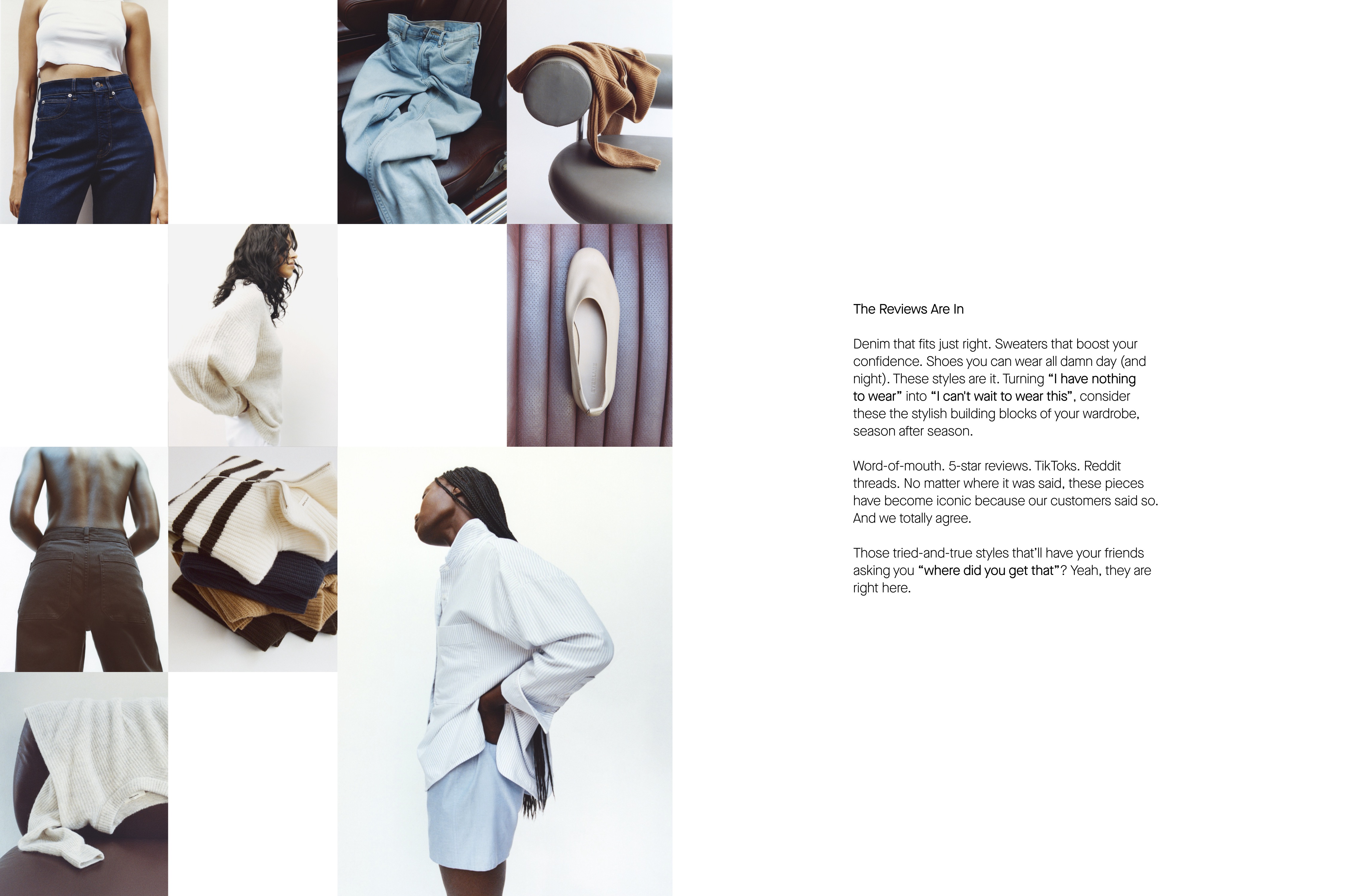 Everlane Cult Favorites was built directly from customer behavior--spotlighting the products that consumers consistently returned to, talked about, and advocated for organically. The campaign translated real customer testimonials into a brand-forward storytelling moment, reinforcing Everlane’s credibility through proof rather than claims.