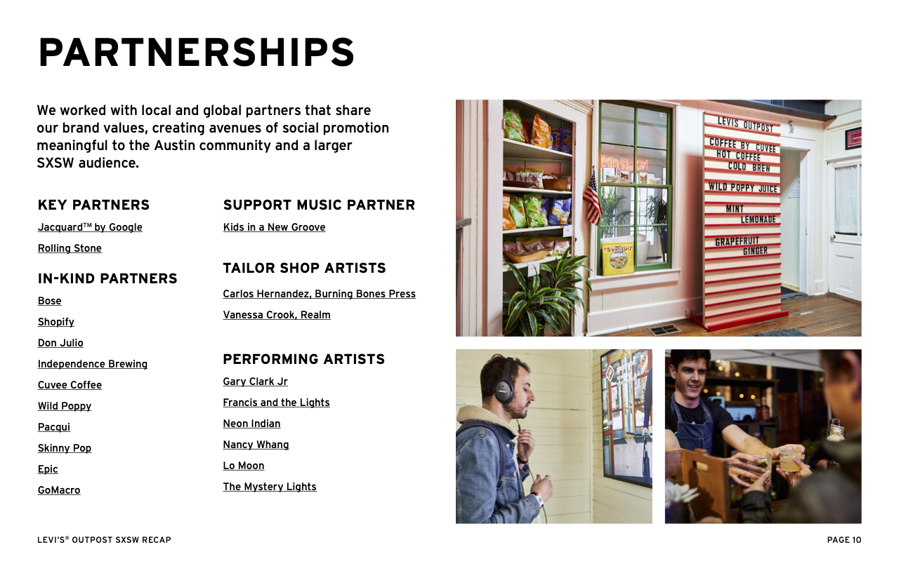 Regional collaboration lead for partnership across DTC, Wholesale and SXSW activation launch where the product won ‘best new wearable’.